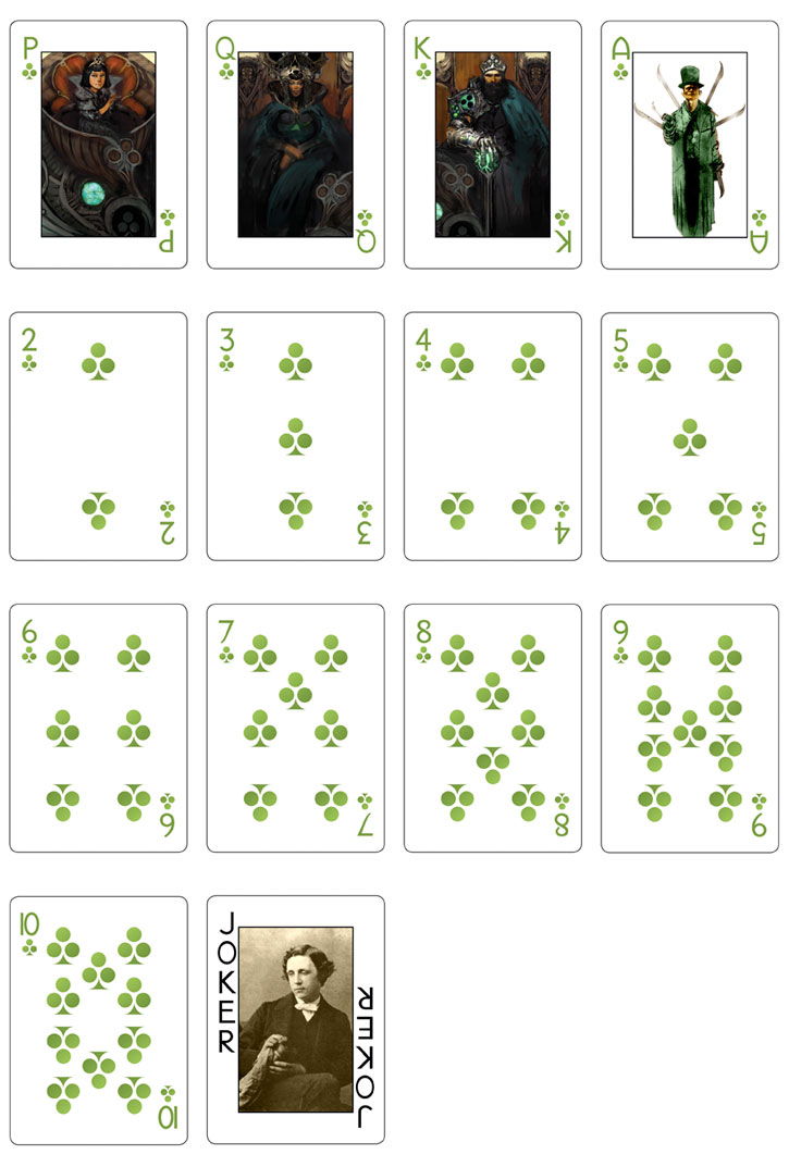 A Hatter M: The Looking Glass Wars themed deck (with a Wonderland twist) of playing cards designed by Frank Beddor. © 2012 Automatic Pictures, Inc.
