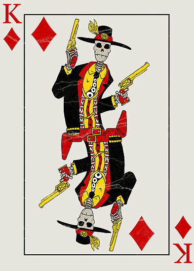 This is a funny interpretation of Wild West heroes. Western Skulls 🙂 It hasn’t been printed as a deck of playing cards. I hope sometime it’ll be.