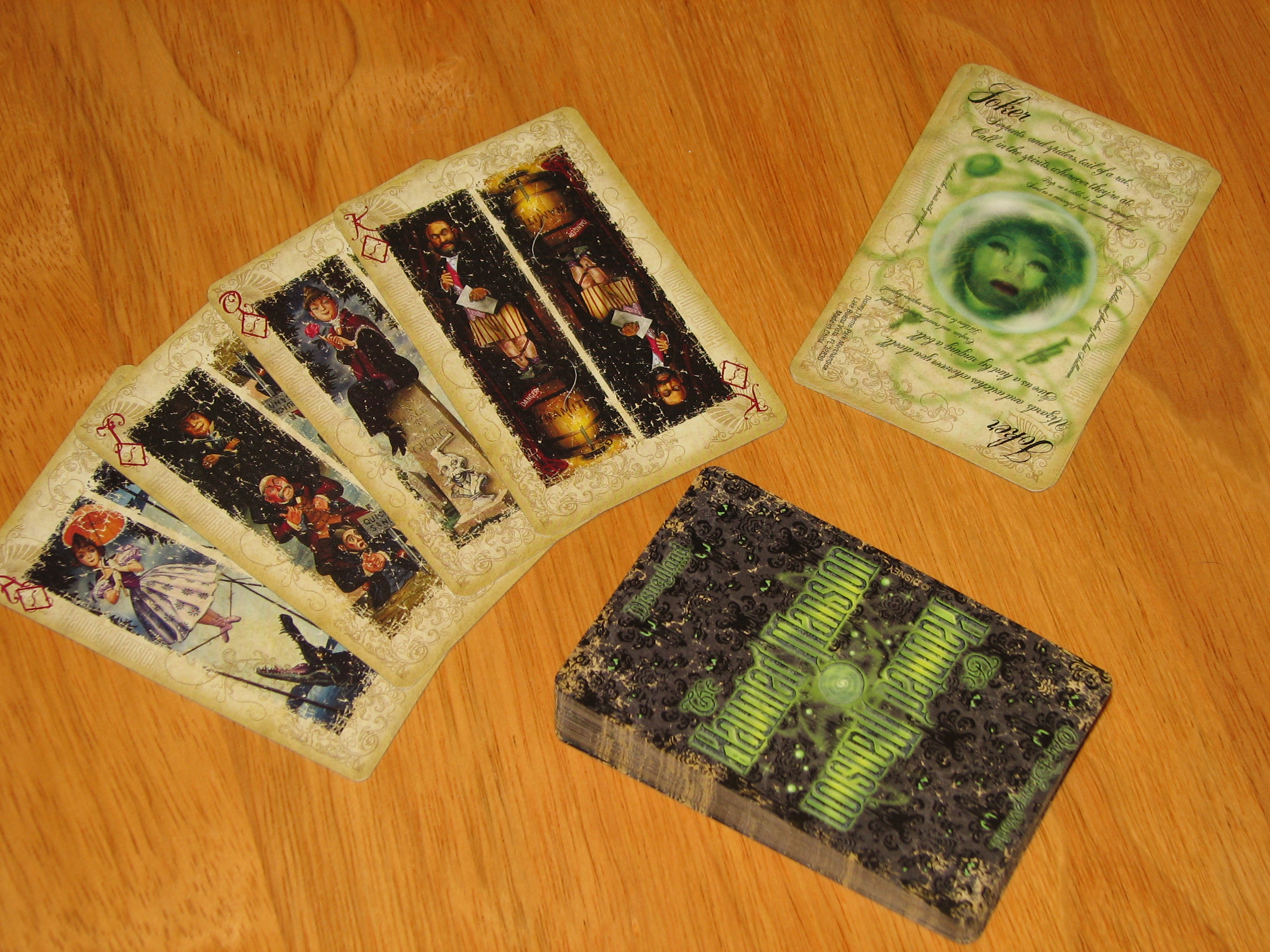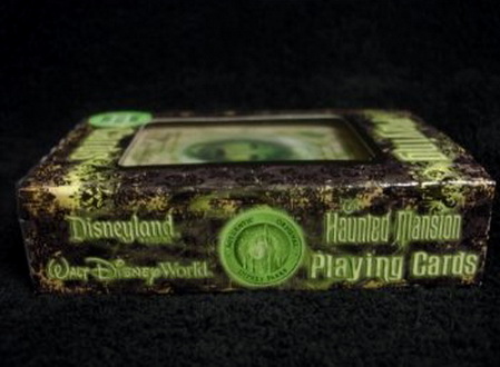 A deck of Haunted Mansion playing cards produced by Disneyland. The Haunted Mansion is a dark ride located at Disneyland, the Magic Kingdom (Walt Disney World), and Tokyo Disneyland.