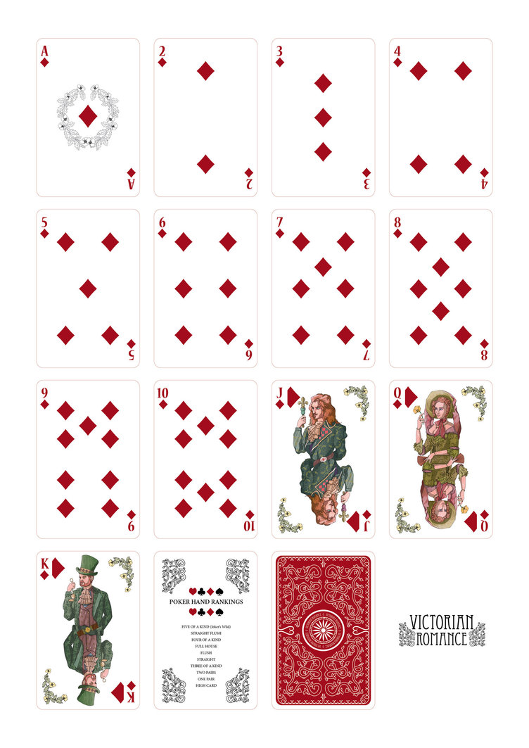 “Victorian Romance is the name of the playing card deck which I designed as a part of my graduation thesis in Winter 2011 – Spring 2012.” ~ Joni S. (KurosuJun)