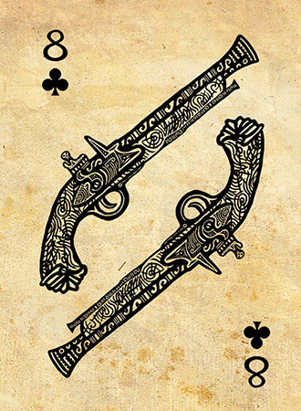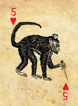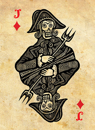 This deck of playing cards is dedicated to tattoos and pirates and was printed by Israeli company Kipod Studio in 2011. Playing cards are designed by Vitaly Fishilevich. Poker size. 52 playing cards + 2 Jokers.