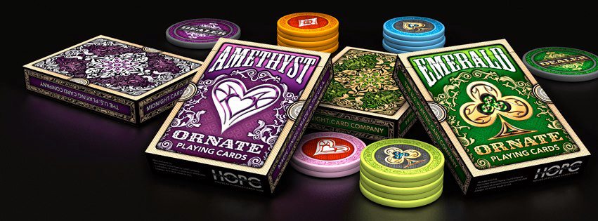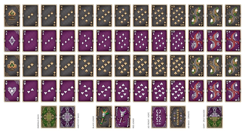 Midnight Cards (Randy Butterfield) in cooperation with the House of Playing Cards (HOPC) are going to release a new set of ORNATE playing Cards – Amethyst and Emerald.