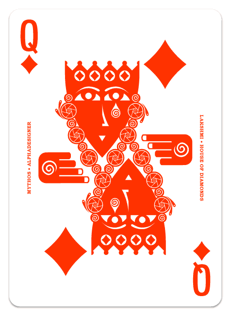 The card symbolizes wealth and material prosperity. Lakshmi is a Hindu goddess of wealth and fortune, closely associate with money, which are considered one of her many manifestations.