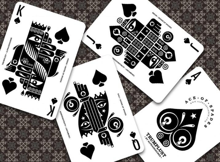 “I’ve been dreaming of designing my own set of playing cards for a lot of time. The idea first came in 2007 when I was working on my Theogony project. For a brief time I was even considering turning the whole project into a tarot deck. Last year [2011] I finally started making drafts for the more widely used French deck and that’s how my Trumplust Deck of Cards began to take shape.