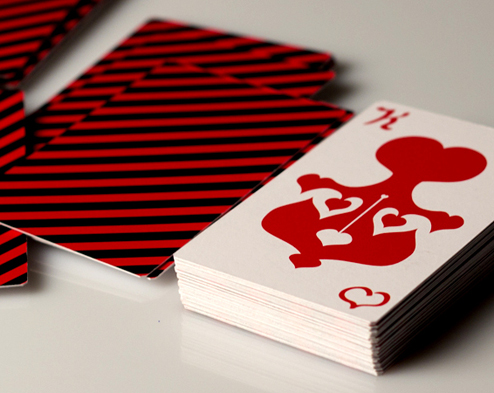 “My attempt with the classic deck of playing cards. With influences from the Middle-East inspiring the symbols for the suits and the numbers, I wanted all the roalty cards to tone well with one another. Overall, 14 decks were made – all cut by hand.” ~ Egill Rúnar