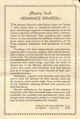 “Romance Espanol” deck printed by Fournier (since 1951).