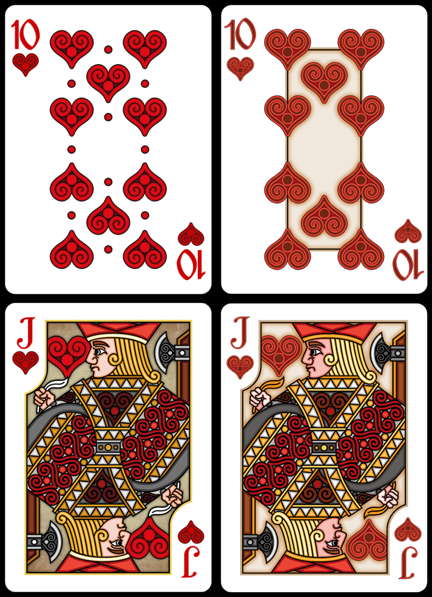 “Art in playing cards. That’s where this deck began back in 2004. Since then, we at Bent Castle have learned quite a bit about the subtle do’s-and-dont’s of card design. This will be our 5th deck, and although it has strong roots in the past, this incarnation of the Pippoglyph concept takes all the passion of the first deck and refines it.
