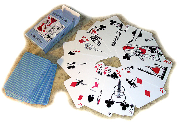 ***A transformation playing card (sometimes referred to as a transformation deck when assembled into a complete set) is a type of playing card where an artist incorporates the pips of the non-face cards into an artistic design. In a classical transformation playing card, the pips retain their standard position and coloration on the card. In some variations, the pips may be different in size, location or color. There is some debate as to whether these cards, often referred to as semi-transformed, should be considered true transformation playing cards…more