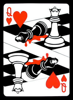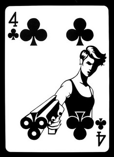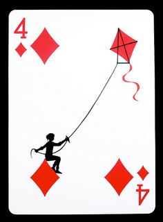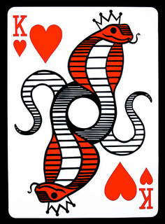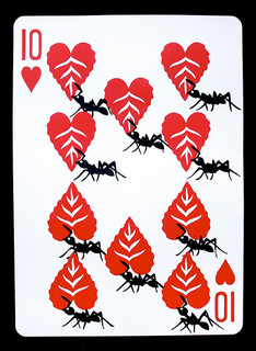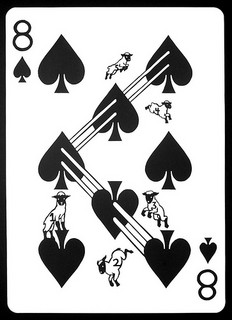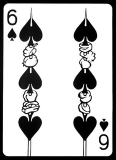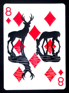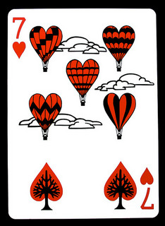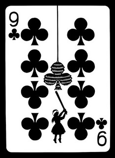 ***A transformation playing card (sometimes referred to as a transformation deck when assembled into a complete set) is a type of playing card where an artist incorporates the pips of the non-face cards into an artistic design. In a classical transformation playing card, the pips retain their standard position and coloration on the card. In some variations, the pips may be different in size, location or color. There is some debate as to whether these cards, often referred to as semi-transformed, should be considered true transformation playing cards…more