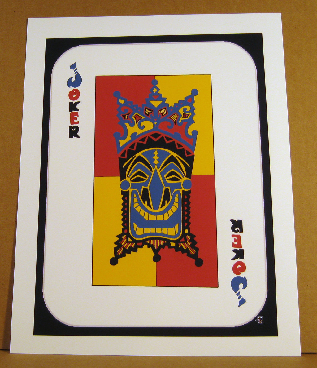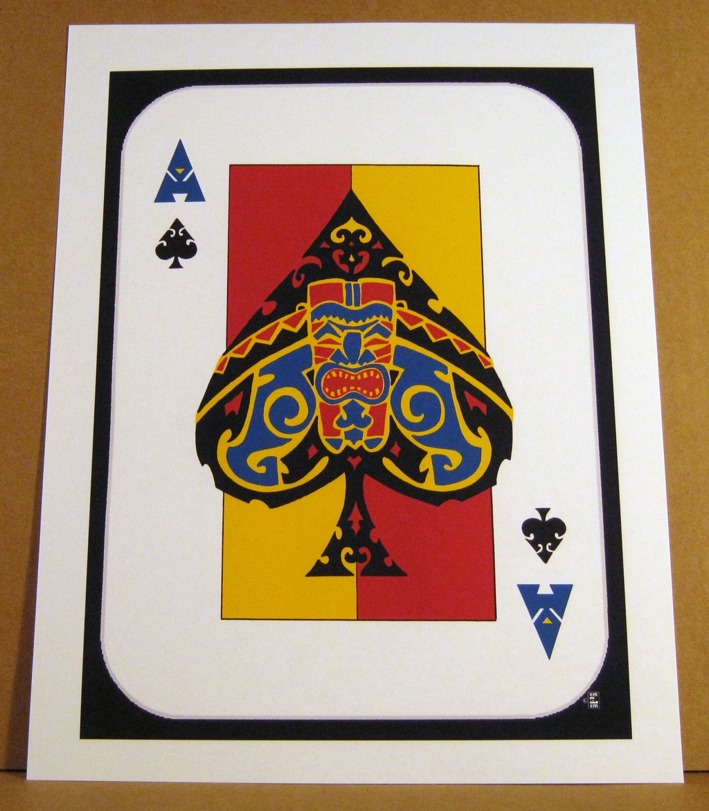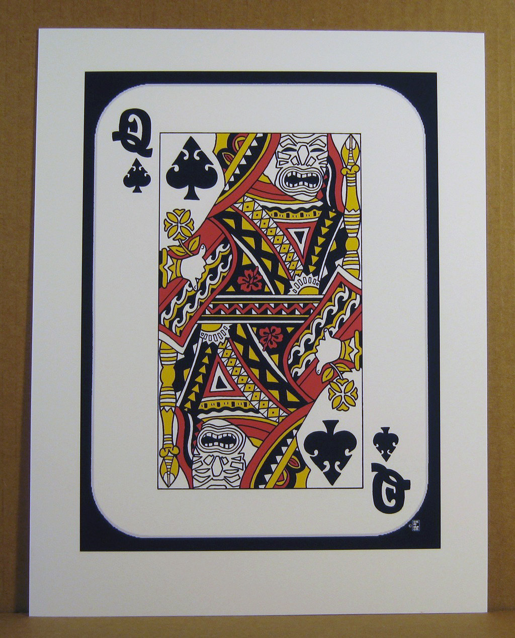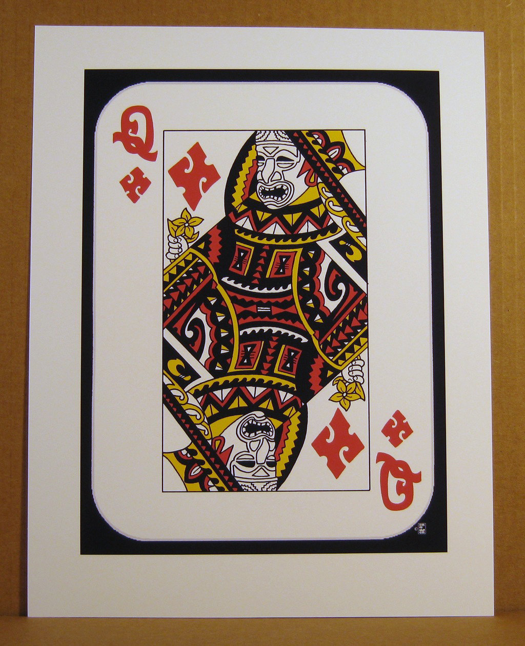 Tiki Series of digital art prints by Michael L. Marland. Digitally-colored drawings using a combination of tiki images and playing card art.