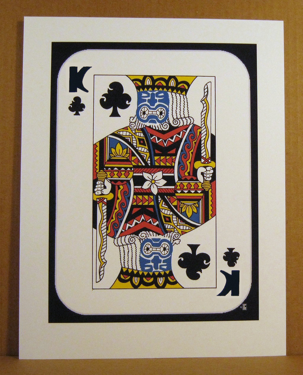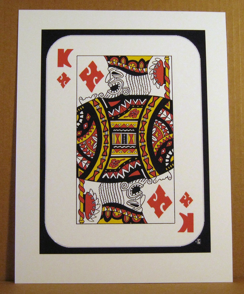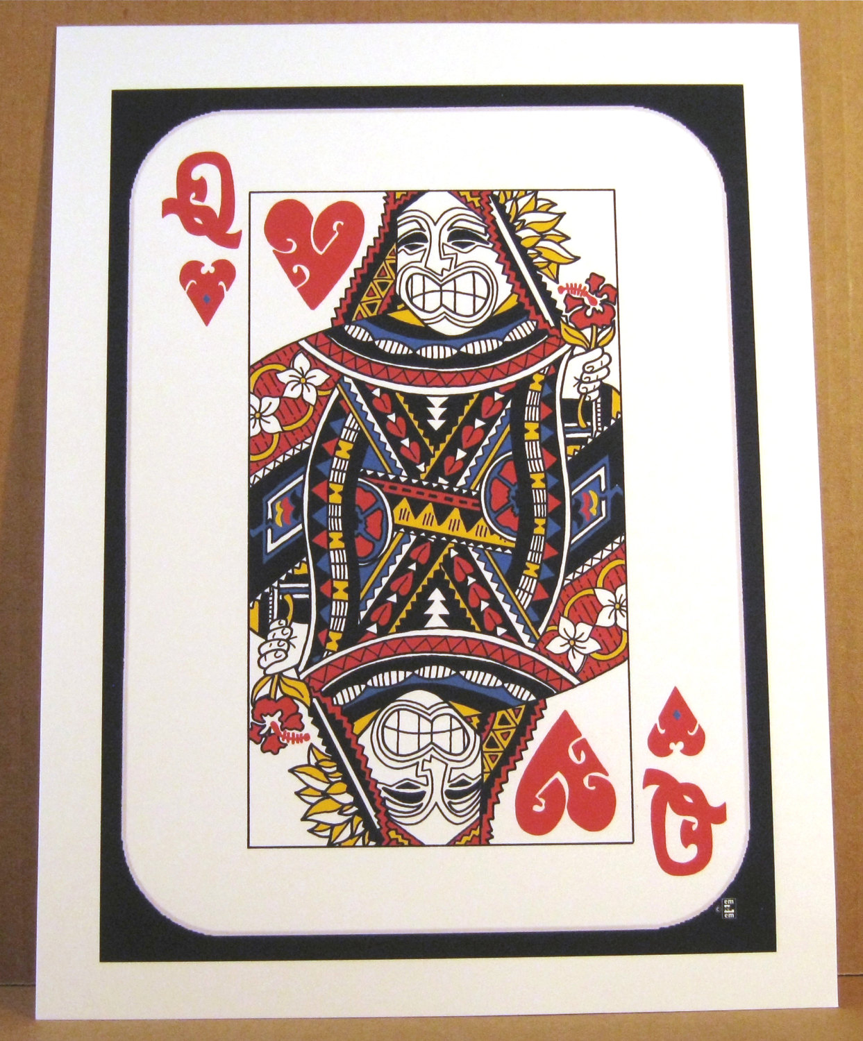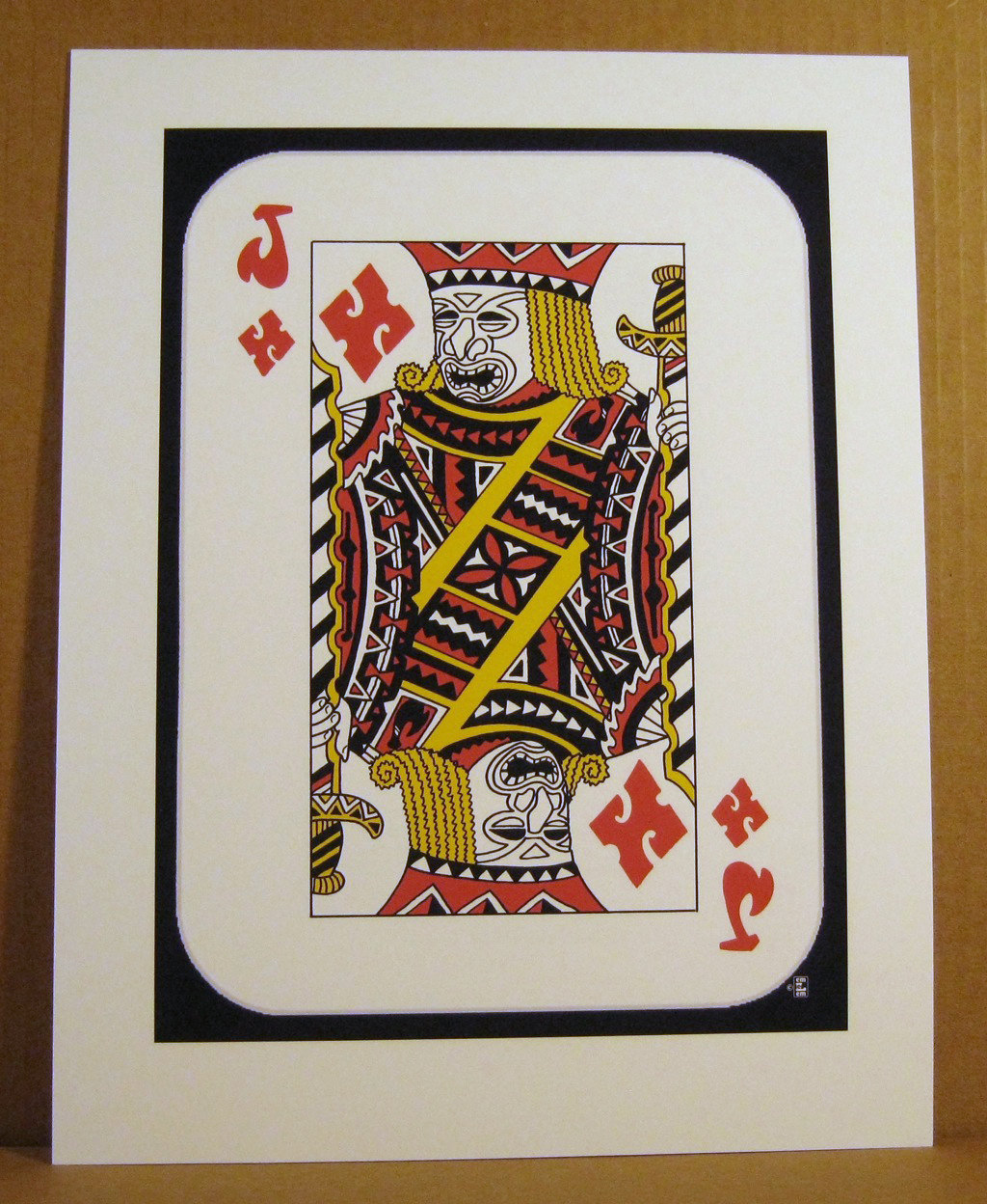 Tiki Series of digital art prints by Michael L. Marland. Digitally-colored drawings using a combination of tiki images and playing card art.