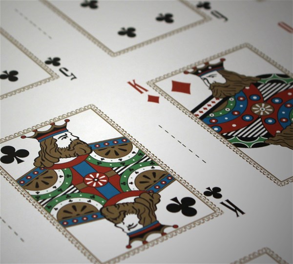 “We created the Cigar Deck with an eye to classic cigar cases–gold-banded, colorful works of art. The attention to detail on these cards starts with the gold-banded tuck, embossed to look like a vintage cigar case. The detailing continues on the card backs, with an intricate design that calls out the 808 number in Roman numerals and regular numerals.