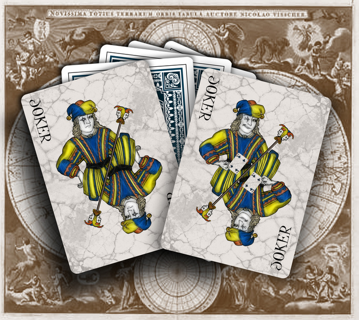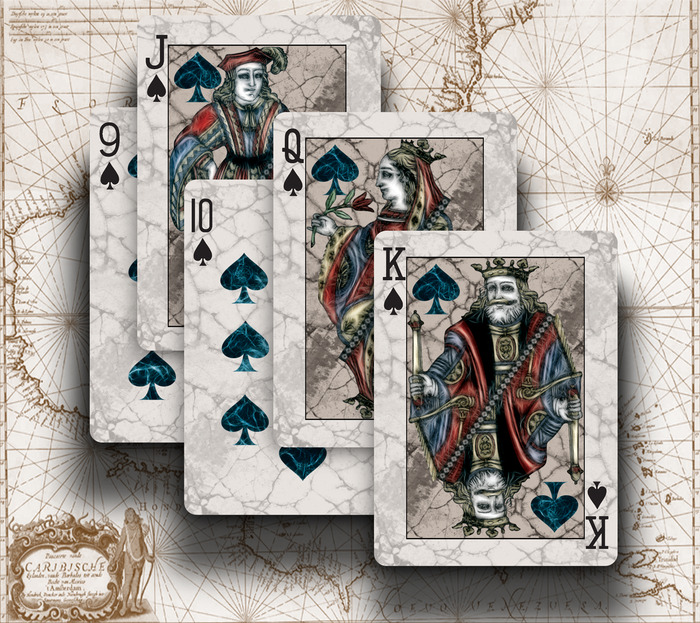 Voyager deck will be printed on Bicycle© grade paper and will consist of 40 number cards, 12 custom court cards, 2 Jokers, 1 double backer and 1 special gaff card. Custom court cards are morden variations of the classical Belgian-Genoese Pattern wich to a certain extent is similar to the classical French Pattern.