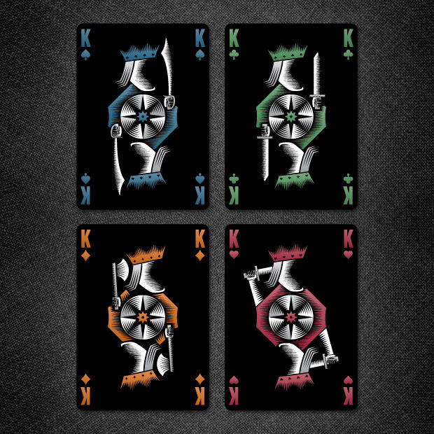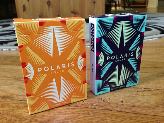 Polaris is a celestial-themed deck with modern woodcut-style illustrations (4-color) and is designed by Vända Playing Cards. It should be available in Lunar, Solar, and Eclipse Editions. Printed by USPCC.