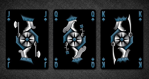 The design of three decks is almost the same – different colors of playing cards and backs + different gaff cards in each deck. The limited edition Eclipse Edition deck has to be printed with 5 metallic ink colors on the fronts, backs, and the tuckbox (each box should be hand-numbered).