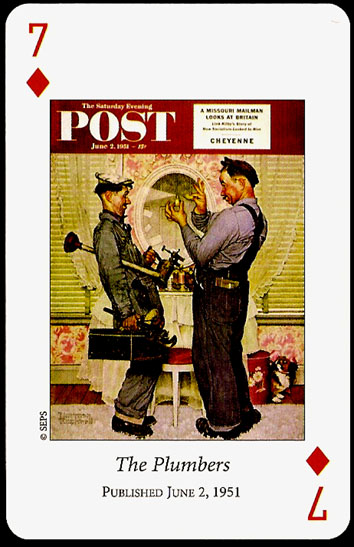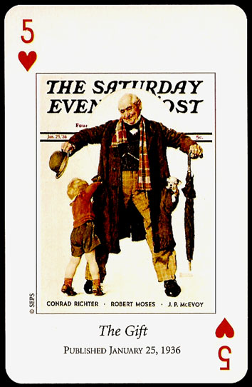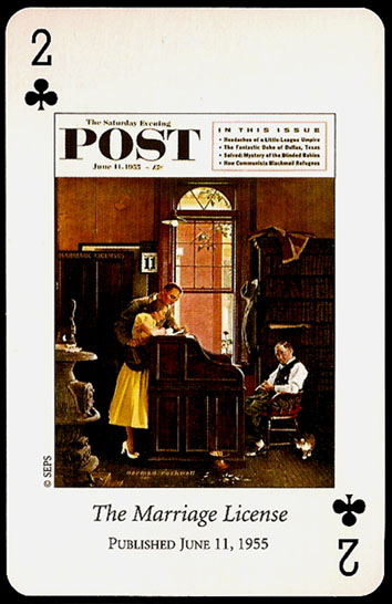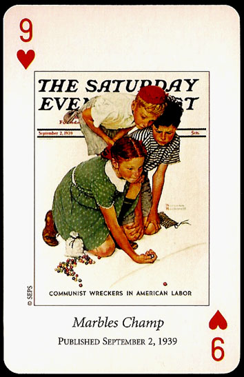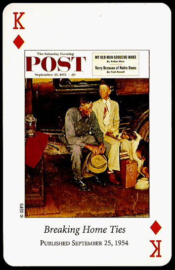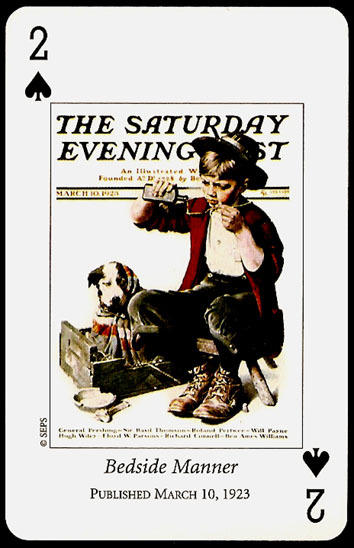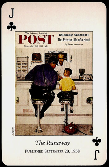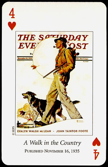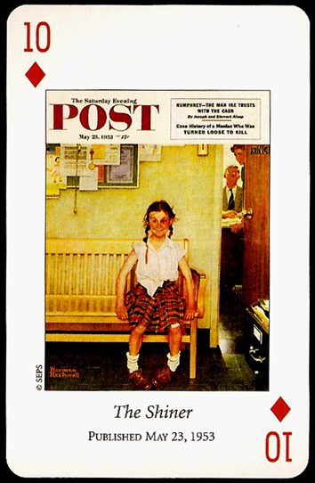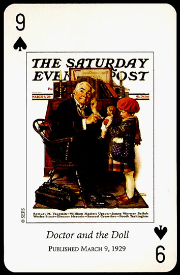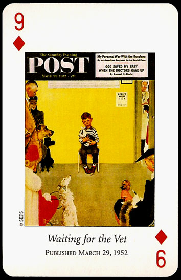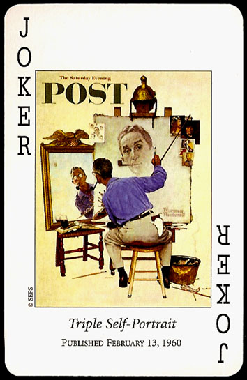 “Saturday Evening Post” playing cards were printed by U.S. GAMES SYSTEMS, INC. in 2004. A double bridge collectiable set with a brief biographical booklet of Norman Rockwell.