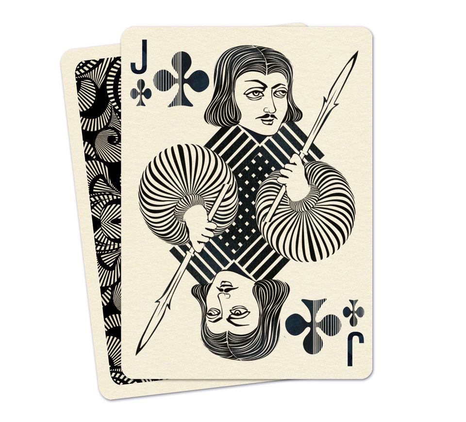 Two artistic styles – Op Art and Woodcut – come together to create one completely original playing card deck. Uusi (Blue Blood, Bohemia Playing Cards) started its third playing card project on Kickstarter. The deck will be printed by USPCC on Bicycle playing card stock with an Air Cushion Finish.