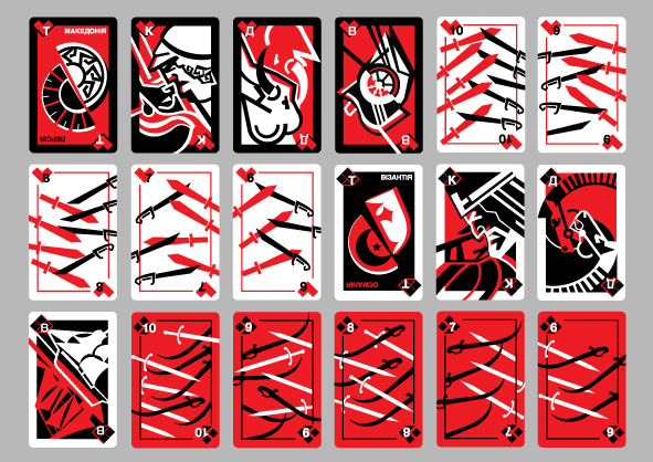 War Imperiors playing cards designed by Kate Goltseva. The deck: 36 playing cards (project). Bridge size.