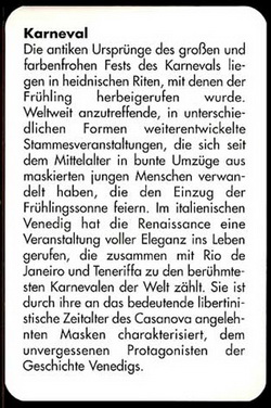 Carnival Deck was produced by Lo Scarabeo (Italy) and printed by Modiano (Italy) in 2006. Bridge size.