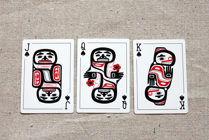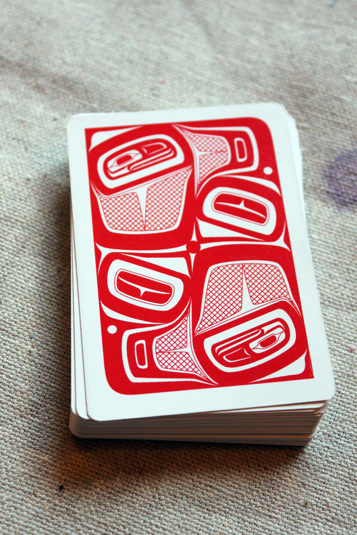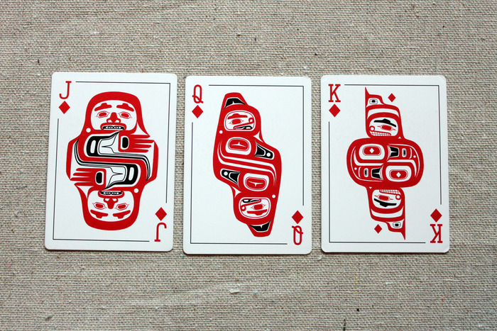 A deck of playing cards featuring traditional Northwest Coast Native American art! Designed in Juneau, Alaska. It should be printed by USPCC.