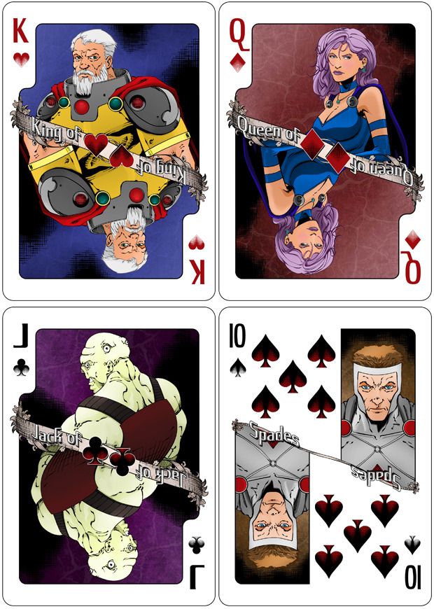 Jacob Bear draw comics. He decided to combine that his love with his graphic design skills and to create his own custom deck of playing cards. It began based on an original character he drew for the Emerald City Comic Con’s “Monsters & Dames” Children’s Hospital charity book. Due to the overwhelming popularity of the character, he decided to expand upon the universe the character resides in.