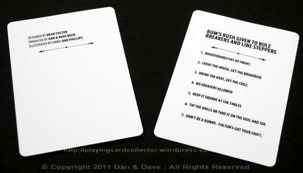 These playing cards are produced by D&D in collaboration with its Creative Director Brad Fulton. Brad Fulton was the ideologist of this deck. D&D supported his idea with its knowledge and experience in the field of playing card production.