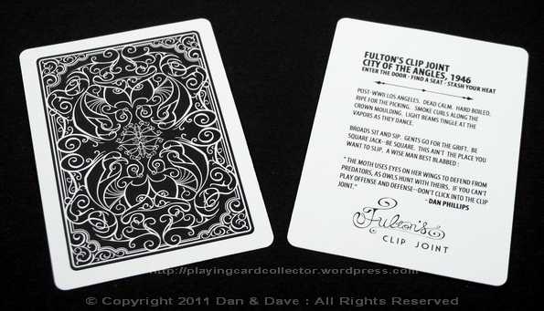 “Fulton’s Clip Joint Playing Cards celebrate our fascination with cinema, history, and the art of the grift. Taking inspiration from vintage Los Angeles and Film Noir***, Fulton’s captures a time and place where men were men, women were dames, and the next deal could be your last.