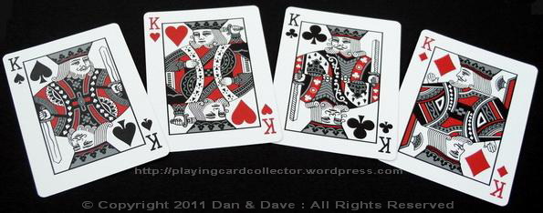 Court cards are standard modern Bicycle (Bee) court cards. But they are recoloured to fit noir theme.