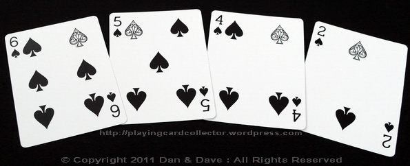 As you can see the order of custom pips is almost uniform for all number cards. But magicians like number “3” :). So the Three of Spades was marked in a special way.