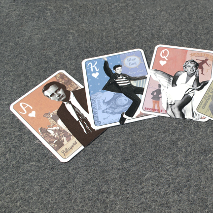 Fifties sex symbols are paired with print ephemera of that time by Vanessa Peterman to create a collectors edition of playing cards (only a project) in celebration of over sixty-five years of entertainment from The Golden Nugget Casino and Resort in Las Vegas.