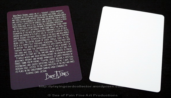 These decks are one of the most interesting decks printed by USPCC. All custom – even pips on each number card. Playing cards designed by Australian artist Brett A. Jones.