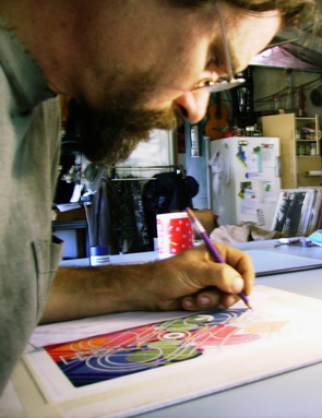 Right from the start Brett wanted to bring all the design elements of the whole deck together on the back of the card to clearly connect it with the overall design. It seemed natural that the front and back of every card should be an obvious part of the same overall design concept. The cardback was also the only place where all the different suits colour schemes could come together.