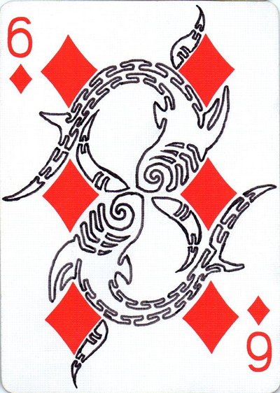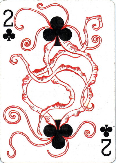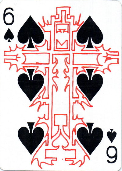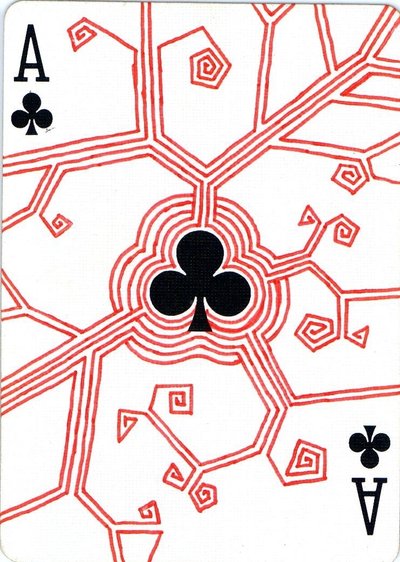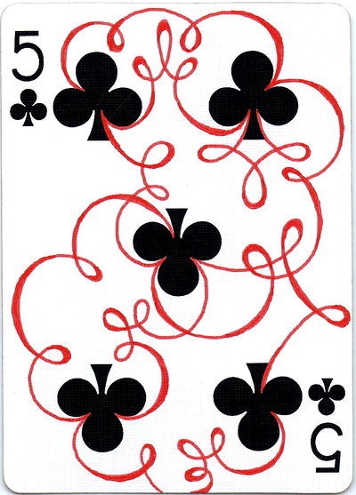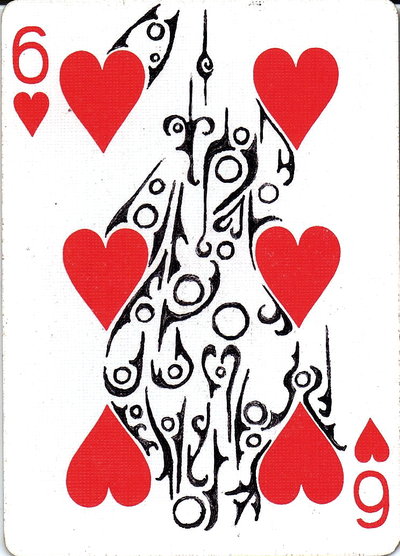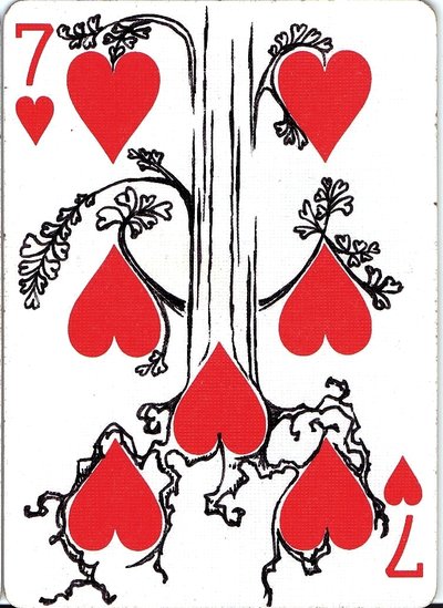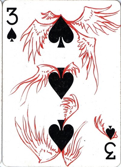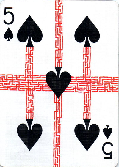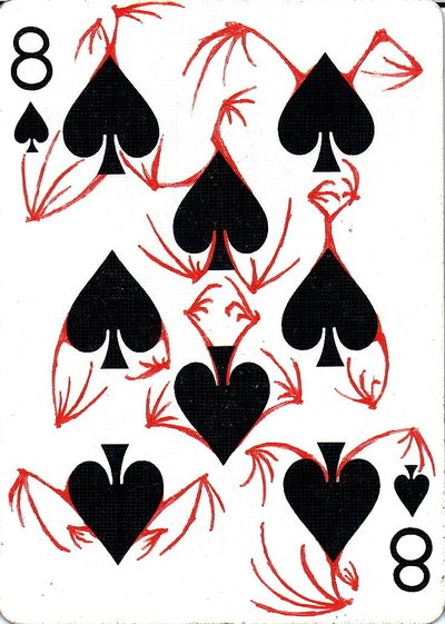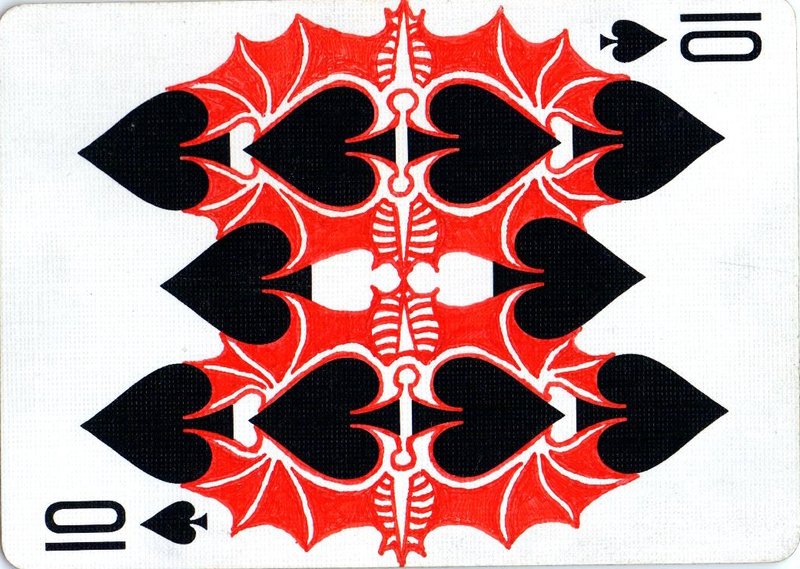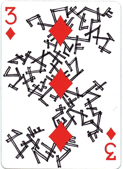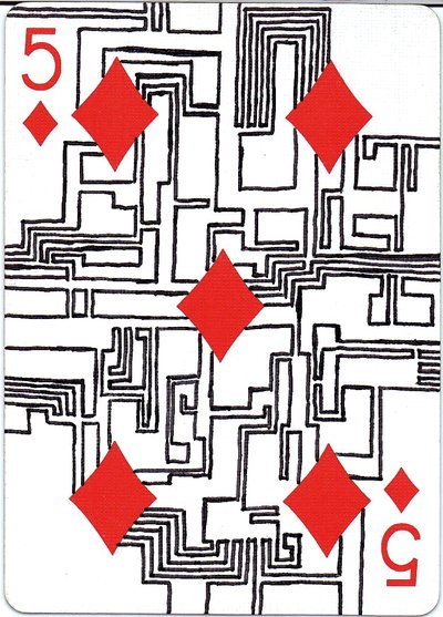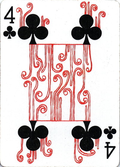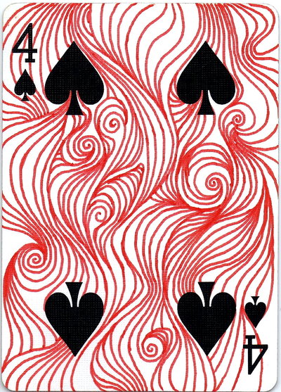 The American artist Roy (expensivesadness) draws on standard Bicycle playing cards, creating his own design of transformation playing cards. Here is his 40 Thoughts Playing Cards.