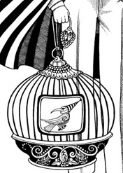 You can see another meaningful detail in the right hand of the “raven Joker”. It is a combination of a singing bird automaton and a real bird in a cage – Jean used such birds for his magic shows (Robert-Houdin’s Portfolio trick – he got different items from a folder).