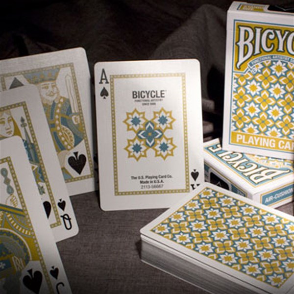 This deck is inspired by Jonathan Adler and Vera Bradley artworks (décor) and eatures original artwork on the front and backs of the cards. Playing cards are available in Orange and Teal. Produced by USPCC. Poker size.