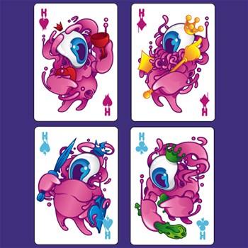 Produced by USPCC. Poker size. Bicycle Stock and Air-Cushion finish. All cards are custom. In some way the deck can be classified as semi-transformation playing cards.
