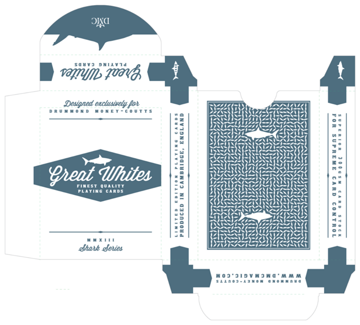 Drummond William Thomas Money-Coutts (nicknamed “DMC”) is an English magician and specialist card sharp. He released his first edition of playing card this year and is going to release the second one with more custome court cards. The deck will be printed by Cartamundi. Poker size.