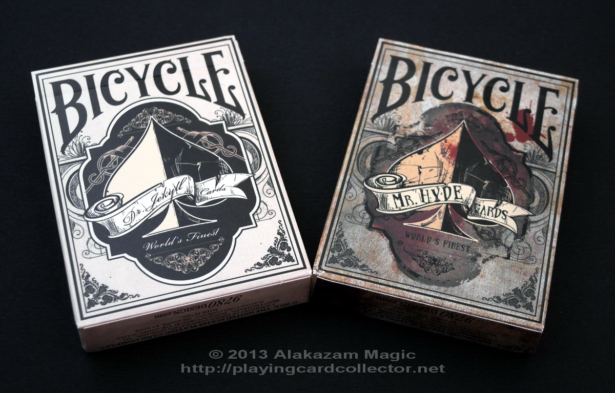 This article is dedicated to the new set of playing cards produced by Alakazam Magic in 2013 – Bicycle Dr Jekyll Playing Cards and Bicycle Mr Hyde Playing Cards. These two decks are the set because they are connected and have the common general theme – Strange Case of Dr Jekyll and Mr Hyde by Robert Louis Stevenson. So they supplement each other and pretend to be used in combination.