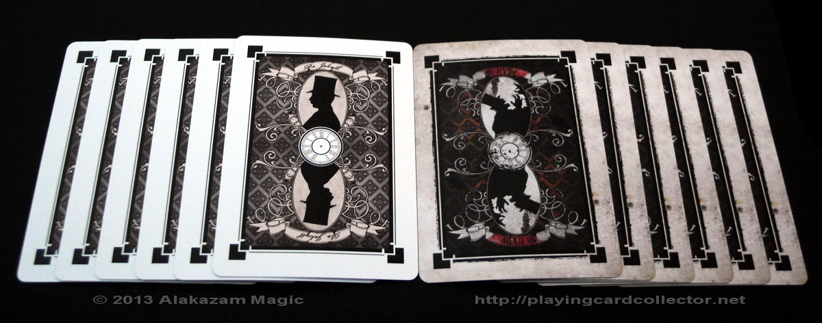 Backs of both decks are strictly dedicated to the “split personality” of Dr Jekyll. In combination they demonstrate the transformation of Dr Jekyll into Mr Hyde.
