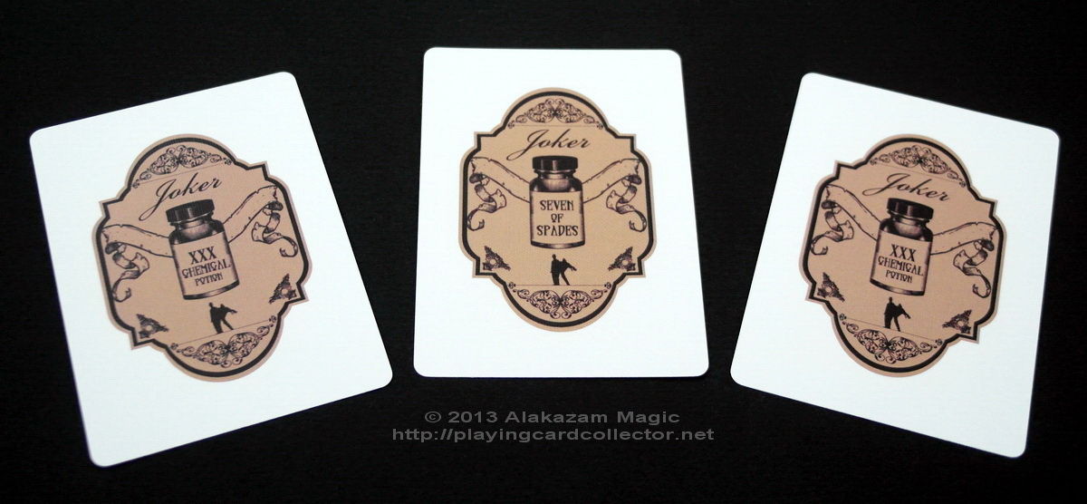 Bottles on the court cards from the Bicycle Mr Hyde Deck are explained on Jokers from both decks. These are above-mentioned special potions helping Dr Jekyll to keep his Mr Hyde inside himself.