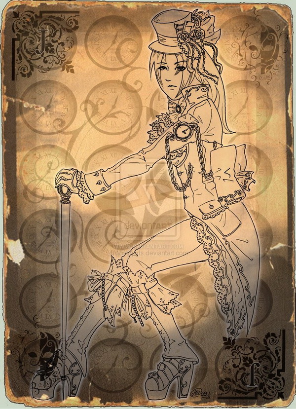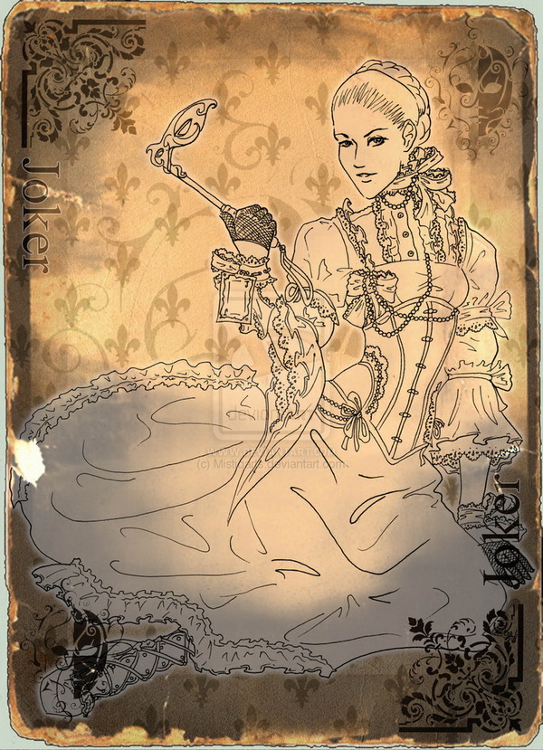 Playing cards (project) designed by the Serbian artist Mina (Mistiqarts) in Victorian style. Characters need more contrast for better visibility. Indices should be unified. Anyway her artworks are quite interesting.