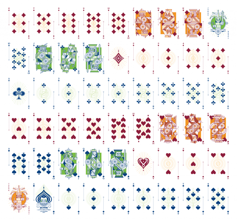 These playing cards are planned to be printed by the Expert Playing Card Company (EPCC). Poker size.