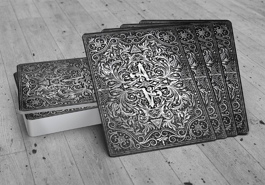 But her back design for Ellusionist‘s upcoming (mid-November 2014) Absinthe Playing Cards was approved (see below).