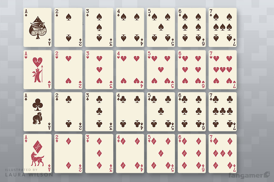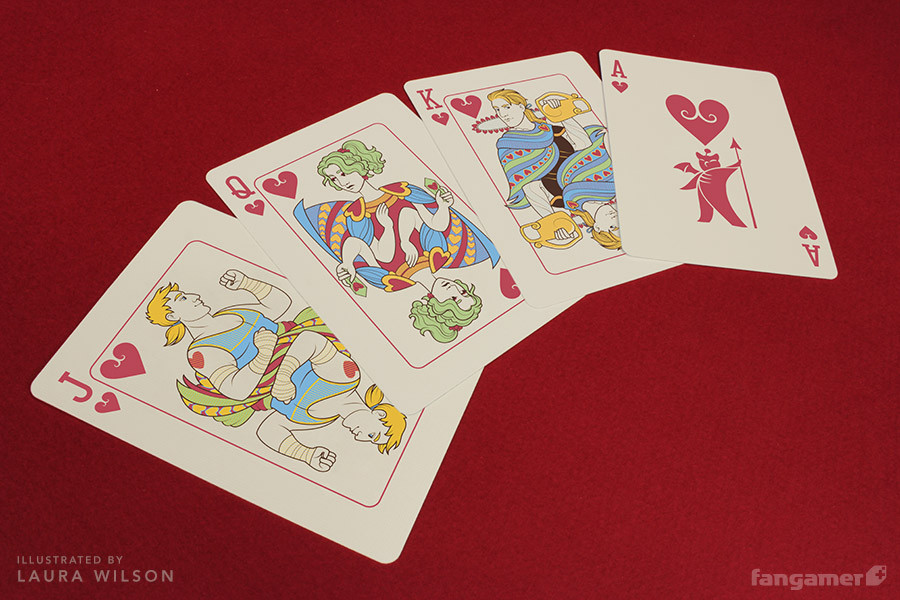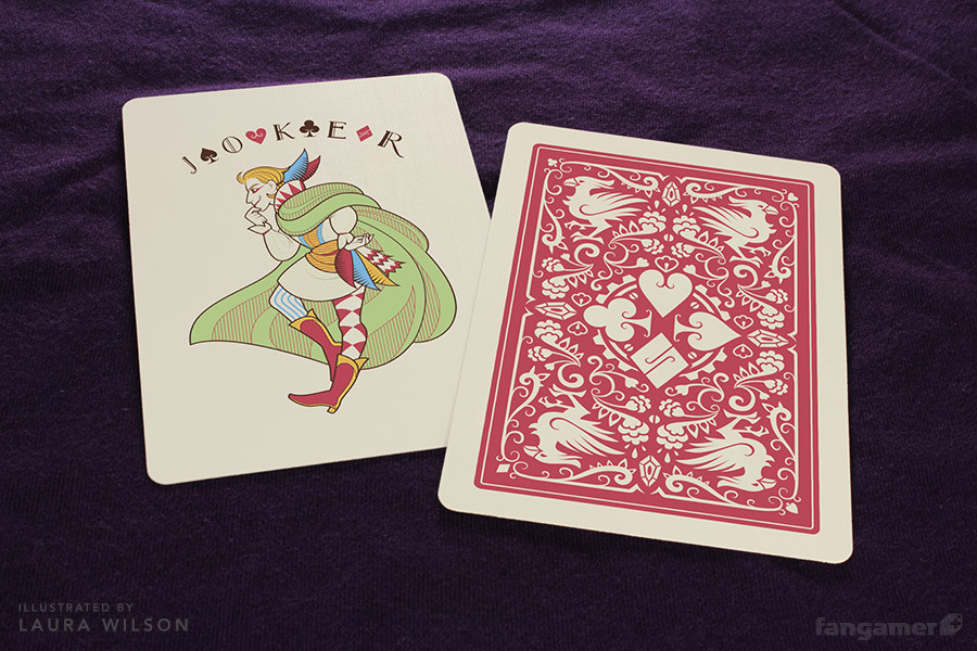 These playing cards were designed by Laura Wilson especially for Fangamer.net, a site devoted to celebrating and encouraging the art of gaming. Each element of this deck is custom.