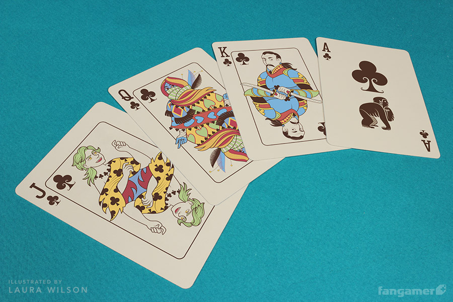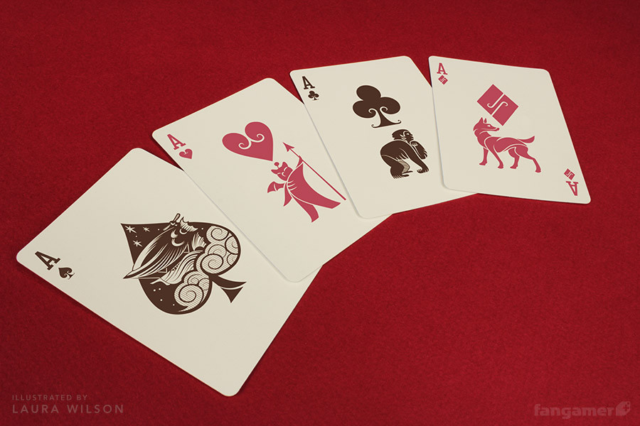 - 52 traditional but custom poker cards (four custom aces);