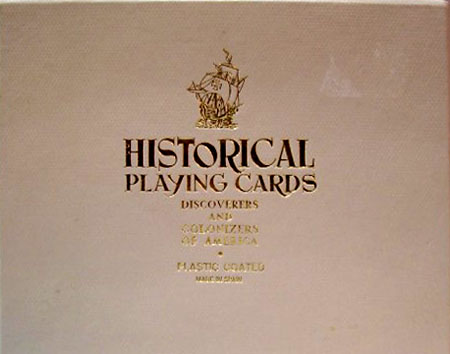Discovery and Colonisation of America Playing Cards printed by Fournier in 1954, produced by Luis Ortiz Munoz, designed by Ricardo Summer Serny (España Imperial Playing Cards). This playing cards are dedicated to Colonisation of America. I assume them to be an addition to the book “Baraja histórica descubridores y colonizadores de América” (text – Luis Ortiz Munoz, illustrations – Ricardo Summers Serny).